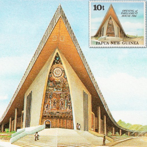 Znaczek upamiętniający otwarcie nowego budynku parlamentu w Papui-Nowej Gwinei.