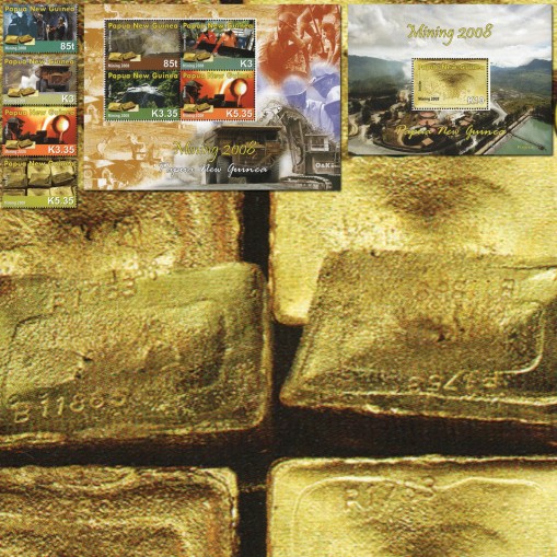 Seria i dwa bloki prezentujące wydobycie złota w Papui-Nowej Gwinei.