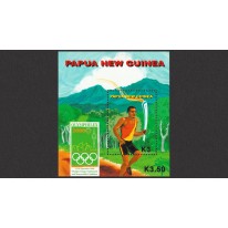 Na bloku przedstawiono biegacza z płomieniem olimpijskim. Dodatkowo widnieje na nim logo wystawy filatelistycznej „Olymphilex 2000”.