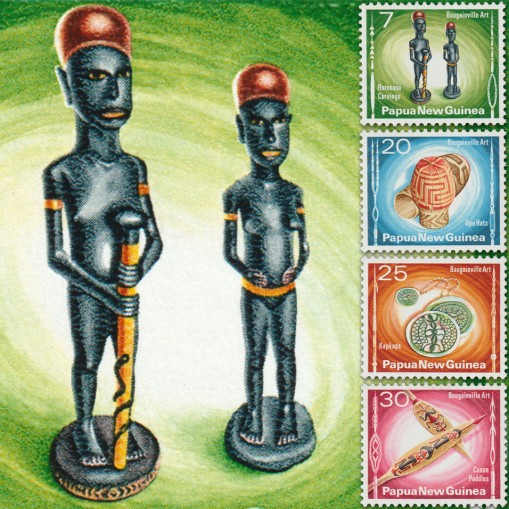 Na znaczkach przedstawiono tradycyjne formy rękodzieła z wyspy Bougainville należącej do Papui-Nowej Gwinei. Są to kolejno: