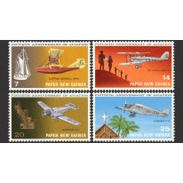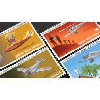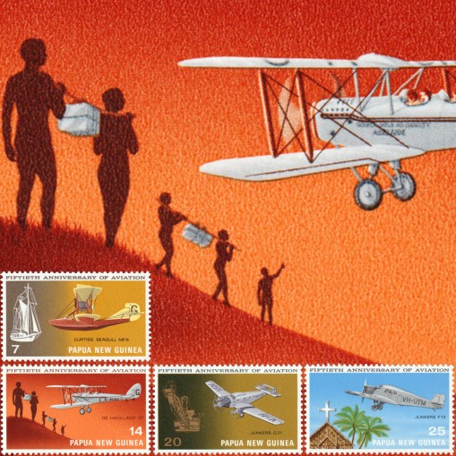 Na znaczkach widnieją następujące samoloty obok tradycyjnych widoków z Papui-Nowej Gwinei: