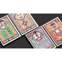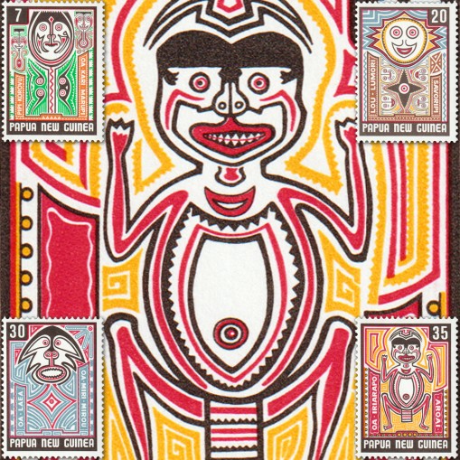 Na znaczkach przedstawiono tradycyjną sztukę ludu Elema zamieszkującego południowo-wschodnią część wyspy Nowa Gwinea. Ilustruje one następujące mity: mit Kari Marupi, mit klanu Savoripi, mit Oa-Laea i mit Oa-Iriarapo.