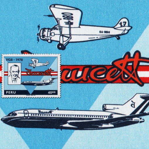 Znaczek upamiętniający 50. rocznicę powstania linii lotniczych Faucett.