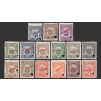 Zestaw 15 różnych znaczków skarbowych wydanych w Peru w latach 1917-1922.