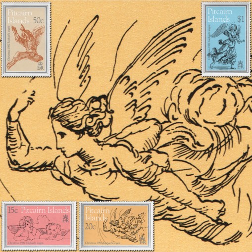 Na znaczkach widnieją rysunki Rafaela przedstawiające anioły.
