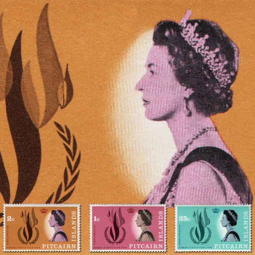 Na znaczkach widnieje popiersie Elżbiety II i logo Roku Praw Człowieka (płomień otoczony wieńcem laurowym).