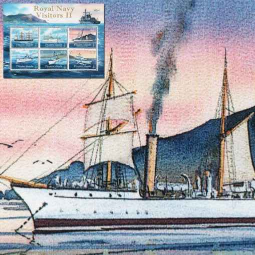 Seria w bloku upamiętniająca statki brytyjskiej Królewskiej Marynarki Wojennej (ang. Royal Navy), które odwiedziły wyspy Pitcairn.