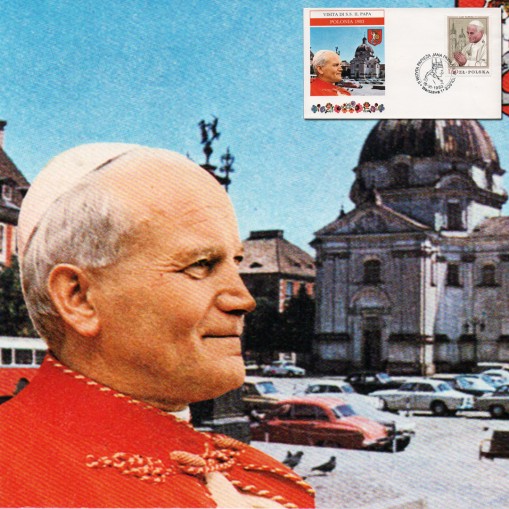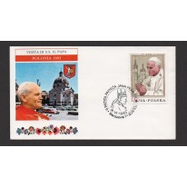 Pojedyncza koperta okolicznościowa celebrująca wizytę papieża Jana Pawła II w Warszawie podczas jego podróży do Polski w dniach 16. - 23. czerwca 1983 roku.