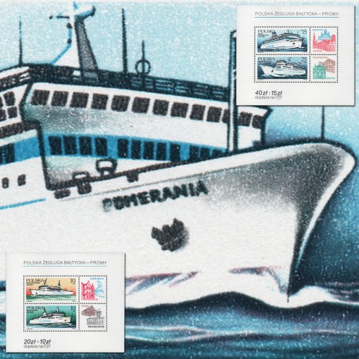 Seria w dwóch blokach, na znaczkach której widnieją promu Polskiej Żeglugi Bałtyckiej: „Wilanów”, „Wawel”, „Pomerania” i „Rogalin”.