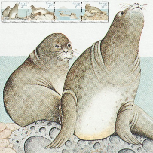 Seria w pasku, na znaczkach której widnieje mniszka śródziemnomorska, gatunek ssaka płetwonogiego z rodziny fokowatych. Jest ona gatunkiem zagrożonym wyginięciem. Ocenia się, że w naturze żyje nie więcej niż 500 osobników.
