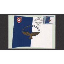 Znaczek na karcie maksimum, na którym widnieje flaga Regionu Autonomicznego Azorów.