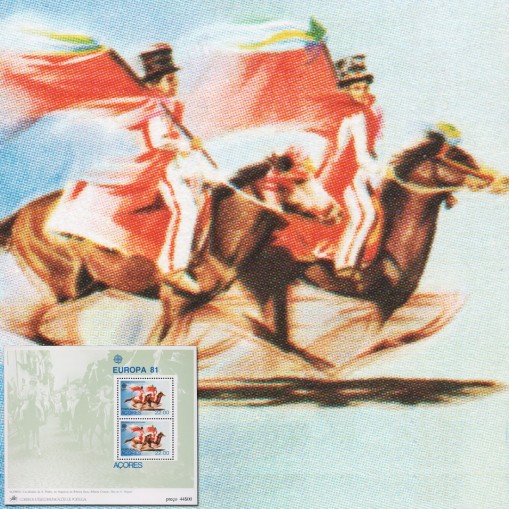 Na znaczku widnieją jeźdźcy z flagami biorący udział w kawalkadzie urządzanej na świętego Piotra (29. czerwca) w miejscowości Ribeira Grande na azorskiej wyspie São Miguel.