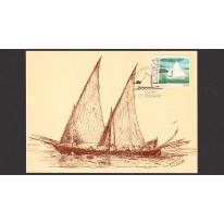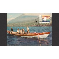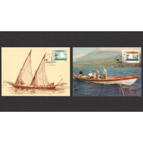 Znaczki na kartach maksimum, na których widnieją tradycyjne łodzie z Azorów.