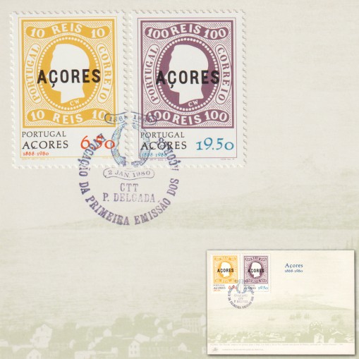 Znaczki są reprodukcjami starych znaczków, na których widnieje król Ludwig I. Były one wydane pierwotnie w Portugalii i noszą nadruki "Açores".