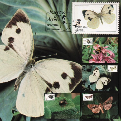 Seria na kartach maksimum, na znaczkach której widnieją owady, kolejno: