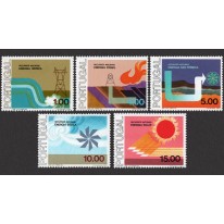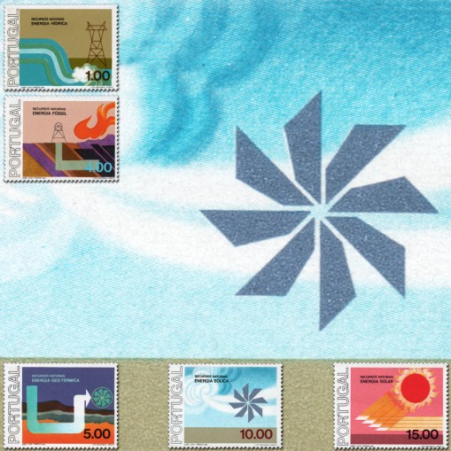 Na znaczkach widnieją zasoby naturalne w postaci odnawialnych źródeł energii, kolejno: woda, ropa, gaz i węgiel, ciepło pozyskane z ziemi (energia geotermalna), wiatr i słońce.