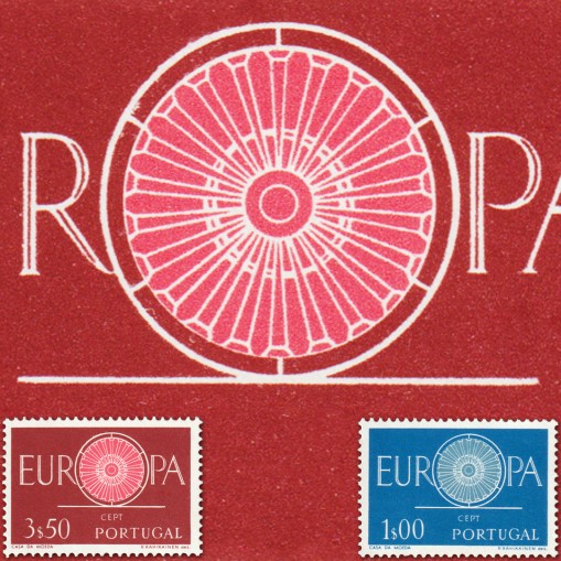 Znaczki tej emisji mają rozpoznawalny wśród filatelistów dizajn koła od rzymskiego dyliżansu pocztowego, będący projektem fińskiego grafika (Pentti Rahikainen). 19 szprych koła odpowiadało liczbie krajów zrzeszonych wówczas w CEPT, a samo koło stanowi literę „O” wyrazu EUROPA.