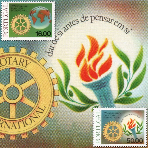 Seria upamiętniająca 75. rocznicę założenia Rotary International, międzynarodowej organizacji stowarzyszającej przedsiębiorców i ludzi różnych zawodów z całego świata, która świadczy pomoc humanitarną, promuje wysokie normy etyczne w każdym zawodzie i pomaga budować dobrą wolę i pokój na świecie.