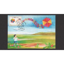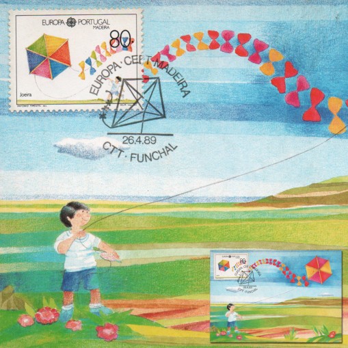 Znaczek z emisji EUROPA CEPT z 1989 roku na karcie maksimum. Tematem przewodnim tej emisji były gry i zabawy dziecięce.