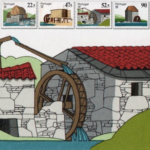 Na znaczkach widnieją budynki tradycyjnych młynów różnego typu znajdujących się, kolejno, w Douro, Coimbrze, Gerez i Bradze.