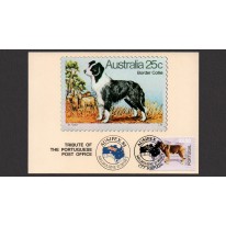Na samej karcie natomiast widnieje australijski znaczek z psem rasy border collie wydany w 1980 roku.
