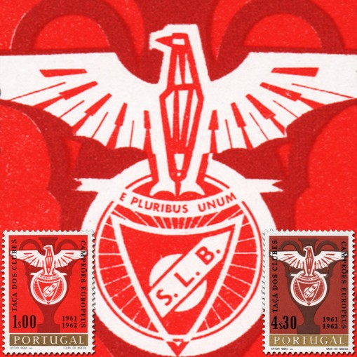 Na znaczkach widnieje orzeł będący symbolem Benfiki na tle Pucharu Europy.