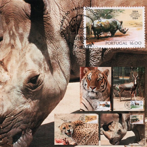 Seria na kartach maksimum upamiętniająca setną rocznicę otwarcia ogrodu zoologicznego w Lizbonie.