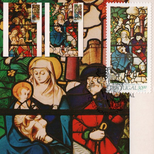 Na znaczkach widnieją witraże z Klasztoru Matki Boskiej Zwycięskiej ufundowanego przez króla Portugalii Jana I w podzięce za cudowną interwencję Matki Boskiej i zwycięstwo nad Hiszpanami w bitwie pod Aljubarrotą. Witraże przedstawiają pokłon trzech króli i ucieczkę do Egiptu.