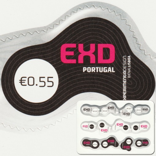 Seria samoprzylepnych znaczków w arkuszu upamiętniająca wystawę dizajnu „ExperimentaDesign” w Lizbonie.