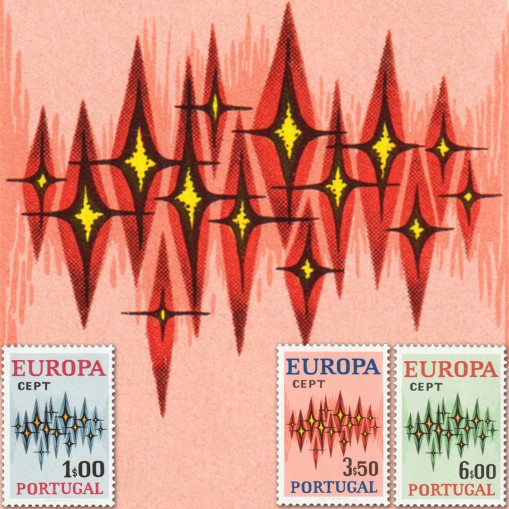 Projektantem emisji EUROPA z 1972 roku był artysta fiński Paavo Huovinen, zaś dizajn to znana filatelistom zorza polarna (Aurora borealis) - każdy przebłysk reprezentuje kraj członkowski wspólnej Europy. Dla ciekawości, Aurora (pol. jutrzenka, zorza) była w mitologii rzymskiej boginią zorzy porannej, brzasku i świtu (poranku). Była utożsamiana z grecką Eos.