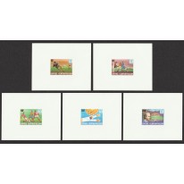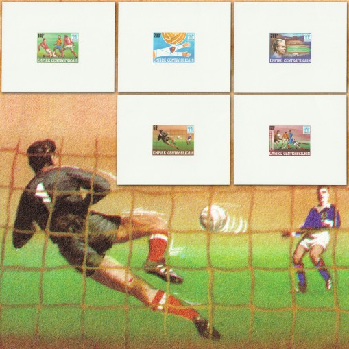 Na znaczkach widnieją akcje piłkarskie, a także (na ostatnim znaczku) trener drużyny Argentyny Jorge Lobo Zagalo i stadion w Buenos Aires.