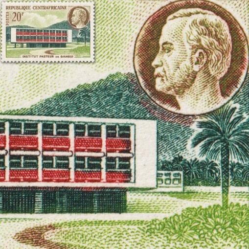 Znaczek upamiętniający otwarcie Instytutu Pasteura w Bangi, stolicy Republiki Środkowoafrykańskiej.