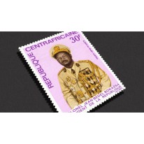 Na znaczku widnieje Jean-Bédel Bokassa (1921-1996) – wojskowy i polityk środkowoafrykański, dyktator w okresie od 1 stycznia 1966 do 4 grudnia 1976 jako prezydent, a następnie do 20 września 1979 jako cesarz Cesarstwa Środkowoafrykańskiego (jako Bokassa I).