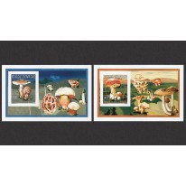 Dwa znaczki w blokach będące częścią serii promującej ruch skautowy i przedstawiającej faunę i grzyby. Na znaczkach widnieją grzyby: muchomor cesarski i jeżoskórka ostrołuskowa.