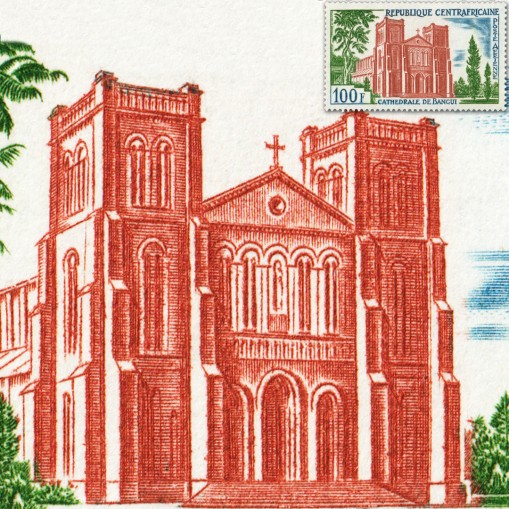 Na znaczku widnieje katedra w stolicy Republiki Środkowoafrykańskiej, Bangi.