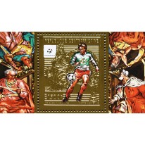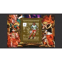 Złote znaczki upamiętniające mistrzostwa świata w piłce nożnej rozgrywane we Włoszech.