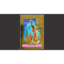 Na znaczkach widnieje bieg sztafetowy mężczyzn i mecz koszykówki.