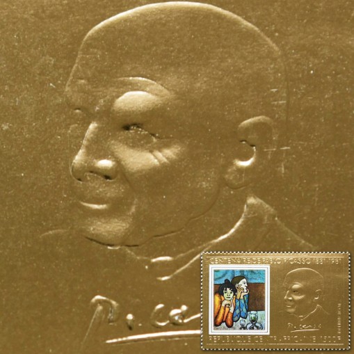 Złoty znaczek upamiętniający stulecie urodzin Pabla Picasso.