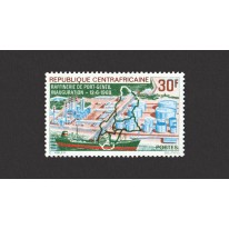 Znaczek upamiętniający otwarcie rafinerii ropy naftowej w Port Gentil w Gabonie.