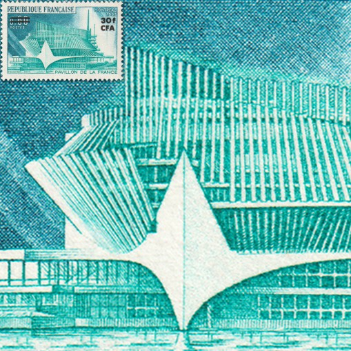 Jest to znaczek francuski, przedstawiający francuski pawilon wystawowy na tych targach, z nadrukami CFA i przedrukami nominału. CFA oznacza Colonie Française Afrique (Francuska kolonia w Afryce).