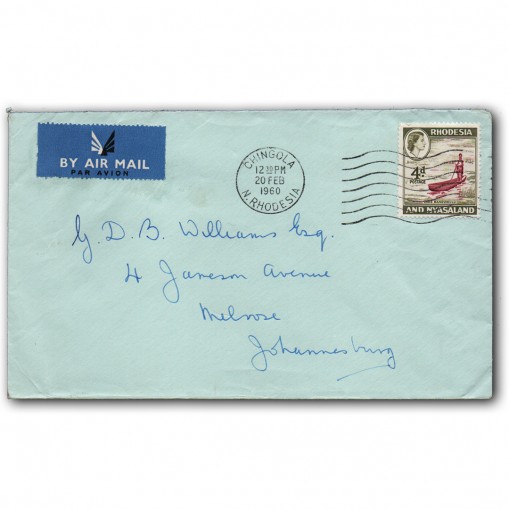 Koperta została zaadresowana z Chingola w Rodezji Północnej do Johannesburga w Republice Południowej Afryki.