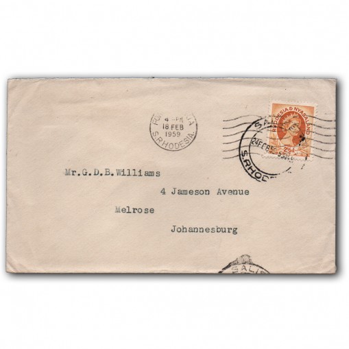 Koperta została zaadresowana z Fort Victoria w Rodezji Południowej do Johannesburga w Republice Południowej Afryki.