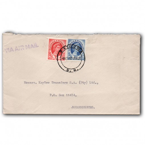 Koperta została zaadresowana z Gatooma w Rodezji Południowej do Johannesburga w Republice Południowej Afryki.