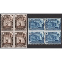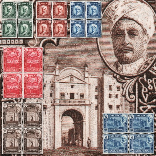Na znaczkach w czwórkach widnieją kolejno: sułtan miast Asz-Szihr i Mukalla leżących w rejonie Hadramaut, port w Mukalla, brama miasta Asz-Szihr i miasto Szibam.