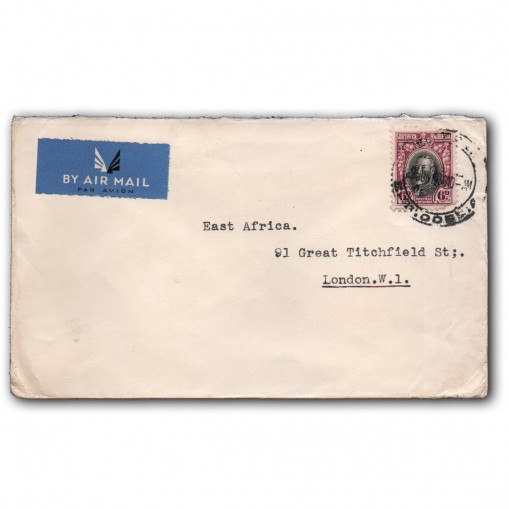 List poczty lotniczej ze znaczkiem obiegowym wydanym w 1933 roku, na którym widnieje król Jerzy V.