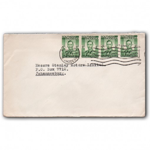 Koperta została zaadresowana z Salisbury w Rodezji Południowej do Johannesburga w Republice Południowej Afryki.