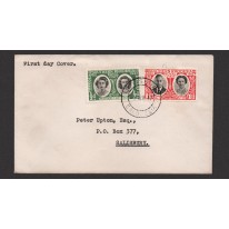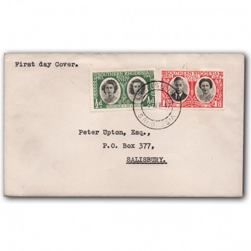 List z kompletną serią znaczków wydaną w 1947 roku dla upamiętnienia wizyty brytyjskiej rodziny królewskiej w Rodezji Południowej. Na znaczkach widnieją księżniczki Elżbieta (późniejsza królowa Elżbieta II) i Małgorzata oraz król Jerzy VI i królowa Elżbieta.