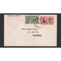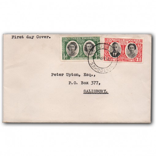 List z kompletną serią znaczków wydaną w 1947 roku dla upamiętnienia wizyty brytyjskiej rodziny królewskiej w Rodezji Południowej. Na znaczkach widnieją księżniczki Elżbieta (późniejsza królowa Elżbieta II) i Małgorzata oraz król Jerzy VI i królowa Elżbieta.