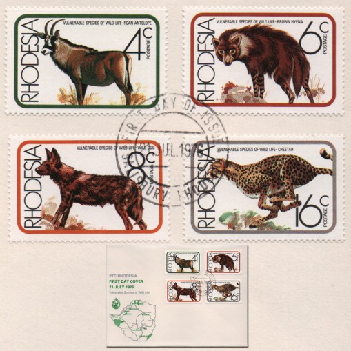 Seria na kopercie pierwszego dnia obiegu, na znaczkach której widnieją następujące gatunki zwierząt występujące na terenie byłej Rodezji: