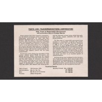 W kopercie umieszczono ulotkę w języku angielskim opisującą odpowiedzialność parlamentarną w Rodezji i zawierającą dane filatelistyczne dotyczące tej emisji znaczków.